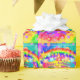 Bright and beautiful, psychedelic Happy Birthday wrapping paper, matches our birthday party place setting (HAMbyWhiteGlove). Every colour of the rainbow seems represented here with red, green purple, blue, orange, aqua, yellow and more! Such a bright, happy and beautiful eye-catching design, it's a party unto itself! 203-302-0337
