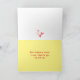 A cheerful birthday custom name card featuring a young girl riding her bike on a summer day after she's collected some flowers from the meadow and her little dog sits in the basket enjoying the ride. Customise the age, name, and the inside message to fit your needs.