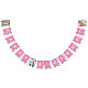 These girly white and pink bunting flags features photos of the birthday girl and a happy birthday message. Change the text and photos by clicking the personalise button.