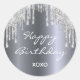 Happy Birthday glitter silver sparkle glam girly Classic Round Sticker