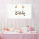 This banner showcases the words "Happy Birthday" in a unique print font with black letters with birthday party decals throughout such as balloons, gifts, confetti and more in this birthday theme and style. This banner has single side printing outdoor safe measures 3"x5" made with an elegant matte finish and is both fade and tear resistant for Indoors or outdoor use great for advertise anything, from birthdays to graduation, weddings to anniversaries. Hemmed and thermally welded edges for neat finish outdoor banners can be bought with metal grommets.