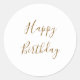 Happy Birthday Gold Custom Colour Text White Classic Round Sticker