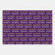 This dark purple wrapping paper has faux (not foil) gold script that says Happy Birthday. It also has white text for the recipient's name. (Shown: Samantha) The text is in a pattern.