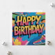 Celebrate in style with this vibrant "Happy Birthday" graffiti wall, bursting with bold colors and dripping paint effects. Featuring stylish sneakers in pink, blue, and yellow, this energetic street art design is perfect for hip-hop themed parties, urban celebrations, or anyone who loves dynamic, colorful esthetics.