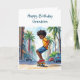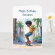 Cute personalised birthday card for a grandson. African-American boy riding his bike down the city streets.
