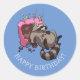 Happy Birthday! Greedy Racoon Cake Cartoon Classic Round Sticker