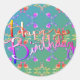 "Happy Birthday!"Hand-written Rose Hearts Teal Classic Round Sticker