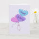 Pink, purple, and aqua heart balloon bouquet on pastel hearts on white background for birthday.