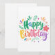 A vibrant and colorful birthday greeting card design featuring the words 'Happy Birthday' in playful, artistic fonts. The letters are adorned with various floral elements and cheerful decorations, including leaves and colorful dots, creating a festive atmosphere. The overall composition is lively and joyful, perfect for celebrating a special occasion.