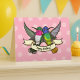 A cheerful birthday card featuring two colourful hummingbird friends carrying a ribbon with a message. Use "Personalise this template" to change the "Happy Birthday!" text if desired. Based on the Golden-tailed Sapphire and Broad-tailed hummingbirds. Matching wrapping paper, tissue paper, stickers and gift tags are available in the NoodleWings store.