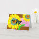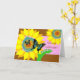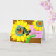 Sretan rođendan, Happy Birthday in Croatian. Illustration of a two butterflies flying around abstract sunflowers. Bright and colourful design with a graphic look. Perfect for the nature and garden lover in your life. Colour scheme of pink, blue, yellow, brown, and green. Art, image, and verse copyright © Shoaff Ballanger Studios.