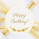 A soft ivory colored background. Text: Happy Birthday! Decorated with faux gold leaves.