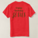 Happy Birthday JESUS Christmas Colours T-Shirt. Red t-shirt and Christmas tree green calligraphy font.
