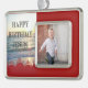 A picture of the sunset over the ocean with the words "Happy Birthday Jesus" and red Christmas trees on the bottom of the design. This ornament is personalised so all you have to do is switch our photo to your photo.