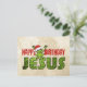 ►IMAGE: Frisky Frog celebrates the birthday of Jesus Christ. Cute stick figure with red Christmas hat sitting on a red and green “Happy Birthday Jesus”. This cartoon image sends a message of Christmas cheer. . . ►COLORS: Red, Green & Black Christmas colours ►TEXT: “Happy Birthday Jesus”.. . . ►Design appeals to men, women and children; All ages, Believers in Jesus Christ and the Christian Religion. Supporters of the Christmas Season being about Jesus Christ. (DESIGN by Paula Bragg)