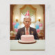 Picture from President Joe Biden sitting behind a pink cake with candles and wearing a party hat.