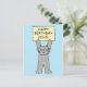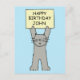 A cute cartoon grey cat holding up above his head a pale yellow banner that says 'Happy Birthday John'.