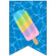 This dessert bunting flags banner has blue water pool pattern background with the words "Happy Birthday" and 3 sweet treat pool floats. There is a ice pop, ice cream cone and a swirled lollipop. I have made this so you can customise the design with different fonts or hidden letters and add other floats. There are 4 other hidden floats to use depending on your message size. You can also make the pool pattern bigger or small on each flag. I hope the tops off your pool party decorations.