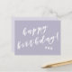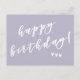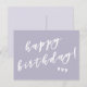NewParkLane - Postcard, 'Happy Birthday!' in elegant brush script / calligraphy typography and three cute little hearts, against a lavender background.
