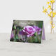 Beautiful lavender roses adorn the front and back of this card. The inside of the card is lavender, which can easily be removed or changed to a different background color.