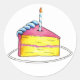Sticker created from an original marker illustration and featuring a slice of birthday layer cake with a candle on top.