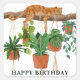 Happy Birthday, Leopard sleeping with house plants Square Sticker