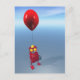 A humerous little red robot with a birthday balloon