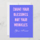 this card warm the heart of a sensitive soul, your card speaks your message to the honoured recipient every time they read it again. Card Details Front Message: Happy Birthday Inside Message: Count your blessings, not your wrinkles.