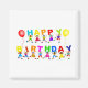A group of happy and diverse children holding up letters that spell out the words HAPPY BIRTHDAY.