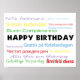 A fun modern birthday design that says, "Happy Birthday" in many languages like Spanish, German and French