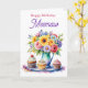 A beautiful personalized grandma's birthday card with a pretty watercolor illustration of a vase of colorful flowers and vanilla cupcakes. Inside is a sweet poem for Meemaw.