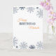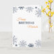 Minimalist birthday card in orange and grey colours. The top and bottom of the card have some snowflakes or flowers in grey colours, with different sizes and tones. In between you can find the text that you can personalise with your own message. You can personalise it further by clicking on customise further.
