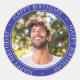 Happy Birthday Modern Simple Elegant Photo Blue Classic Round Sticker