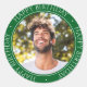 Happy Birthday Modern Simple Elegant Photo Green Classic Round Sticker
