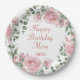 Happy Birthday Mum Pink Floral Party Paper Plate