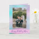 An amazing and one of a kind birthday card for mum, this design features your personal photo front and centre on a purple and blue ombre background. The photo border can be adjusted to fit the size of the picture you added. The bottom of the card reads "Happy Birthday Mum" in lovely purple font. Inside is a warm message. Personalise this birthday greeting card today!