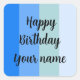 Cool blue stripes pattern with text: Happy Birthday and a name template. Fit a maritime style.