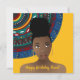 This design features beautiful natural hair woman with a top knot, tribal inspired pattern on gold background.