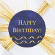Happy Birthday navy blue gold decor Classic Round Sticker
