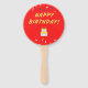 Happy birthday on red hand fan