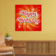 Groovy orange background happy birthday design. This design looks really effective on these Poster