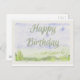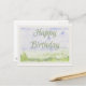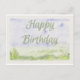 "Happy Birthday" is the message of this design, featuring the effect of a painted watercolour/watercolor background and blue sky.