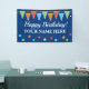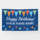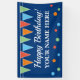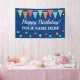 Custom Happy Birthday party banner with colourful bunting flags garland and confetti dots. Add your own name. Cheerful design with elegant typography template. Perfect for kids, friends, family, co worker, boss, husband, wife, dad, mum, teacher, colleague, nurse, employees, grandpa, grandma, children, business owner, etc. Personalised decorations for festive party. Also nice for anniversary, new year's even, corporate party, wedding or retirement celebration. Customisable colours.