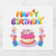 These sparkling wine labels showcases a design that has a birthday cake displaying the words "Happy Birthday" on top in a bubble style print font with gifts and balloons on each side. This design also features a cartoon style happy birthday with party hat and shapes inside of the letters across the top in this birthday theme and style. All labels are printed with photo-quality printing great for customising weddings, birthday parties, and baby showers.