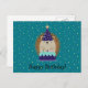 Happy birthday! Cute cartoon hedgehog wearing a party hat postcard.