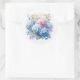 Present your birthday gifts with this elegantly designed floral round sticker. The artwork features a watercolor-illustrated image of pastel blue and pink hydrangea blooms, accented with a gold "Happy Birthday" banner and subtle sparkle details. This sticker is suitable for favor bags, envelope seals, and various other applications. Available in both large and small sizes. The artwork is also available as a template, allowing for easy transfer to other products if desired.