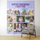 Happy Birthday photo collage backdrop in lilac and purple (editable). Create your own wallhanging with 11 of your favourite pictures which are displayed in square / instagram, landscape and portrait formats to form a simple picture grid. Add your photos working each row from left to right. The wording is fully editable for any occasion and currently reads "happy birthday [name]" in bold print and brush script. The colour palette of lilac and purple is also easy to customise (click "customise further" or message me for assistance).