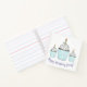 Spiral notebook design features an original marker illustration of a birthday cupcake topped with sprinkles and frosting, and HAPPY BIRTHDAY in a fun purple font. Simply personalise with your information for a unique birthday party favour.