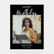Create your own personalised birthday party decor with a custom photo acrylic sign featuring happy birthday and custom name in black and white colour.