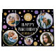 Make your gifts even more special with a custom photo gift bag. This stylish design features a simple pattern of circles and stars, with "Happy Birthday" in a trendy font. You can personalize the template with the recipient's name, age and five of your favorite photos of family, friends and pets! Perfect for milestone birthdays including 18th, 21st, 30th, 40th, 50th and 60th. This allover patterned gift bag comes with your choice of a matte or glossy finish. Printed colors: purple, gold, black and white, or customize the colors with the design tool.